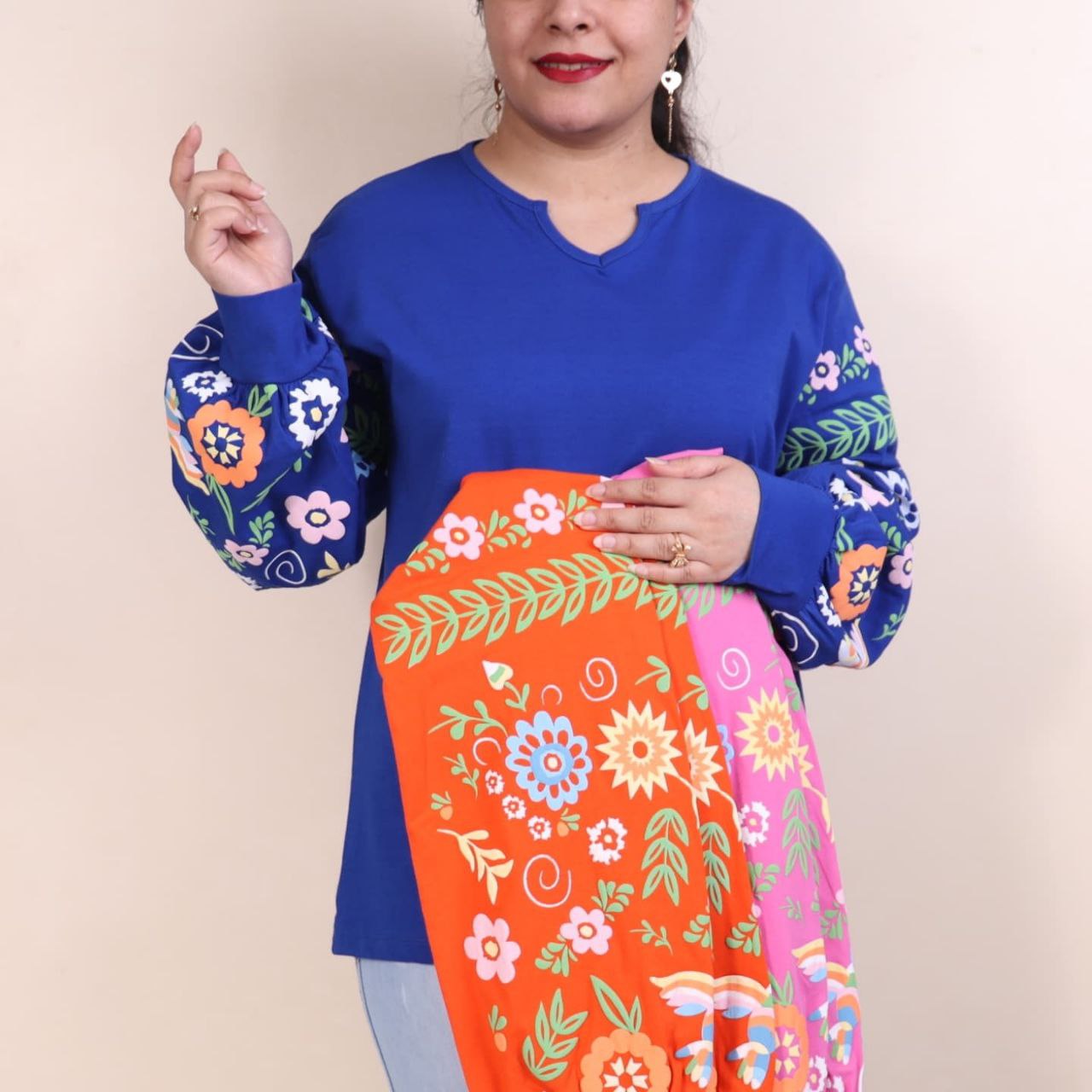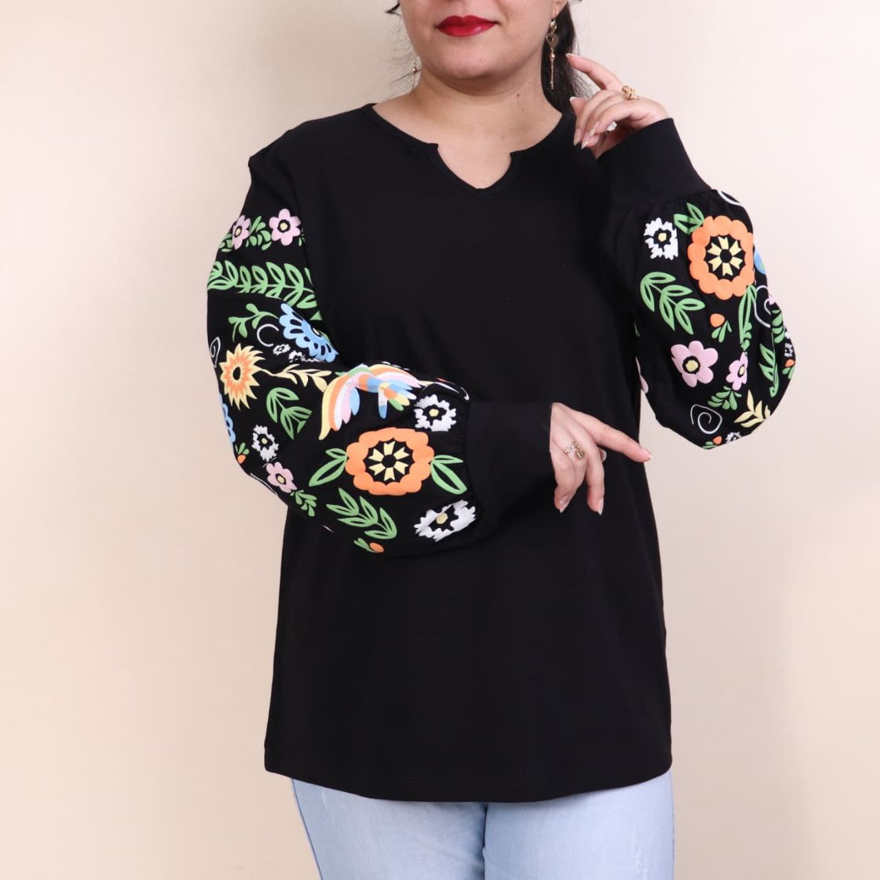 خانهزمستانهبلوز بلوز آستین گلدار قناری