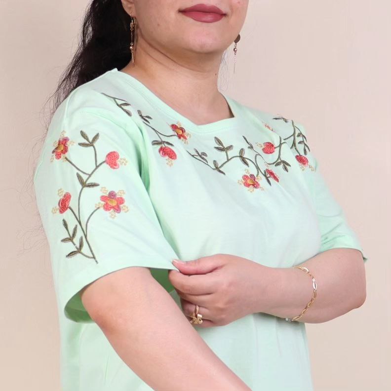 | Size | دور سینه عادی | دور سینه با کشسانی | عرض سرشانه | دور بازو | قد استین | قد تیشرت |