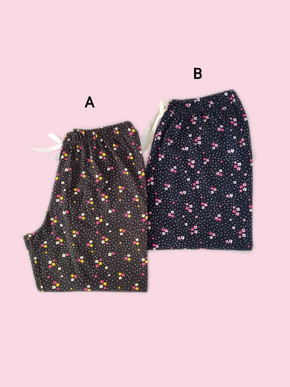 این شلوار در دو طرح قلب طوسی و سورمه ای و شکوفه قهوه ای تیره و سورمه ای می باشد.